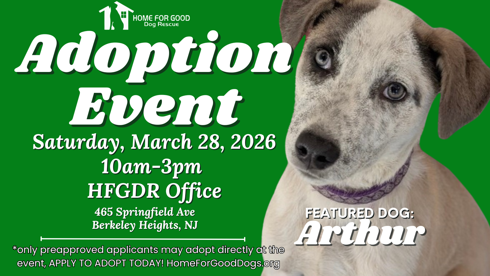 Home for Good Dog Rescue Adoption Event – Saturday, March 28, 2026