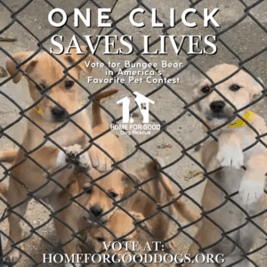 Right now, a kind family has made a promise. If their dog Bungee Bear wins the America’s Favorite Dog Contest, they will give the full $10,000 prize to Home for Good Dog Rescue.